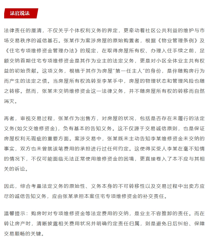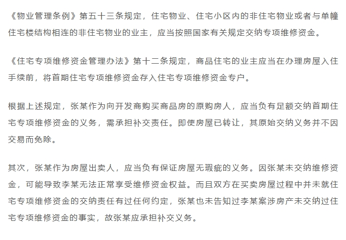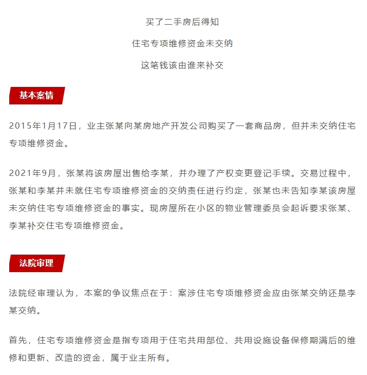 业主被物业管理委员会起诉,二手房住宅专项维修资金,谁应补交?