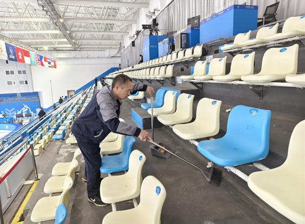据介绍,作为冰上基地各场馆的物业服务方,在收到赛事卫生要求后,该公司便组成了100余名保洁和维修人员组成的亚冬保障团队,并根据要求制定了清废和固定设施领域的保障工作方案,进行了详细的工作分解和任务部署。