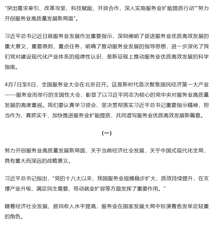 人民日报金社平:努力开创服务业高质量发展新局面