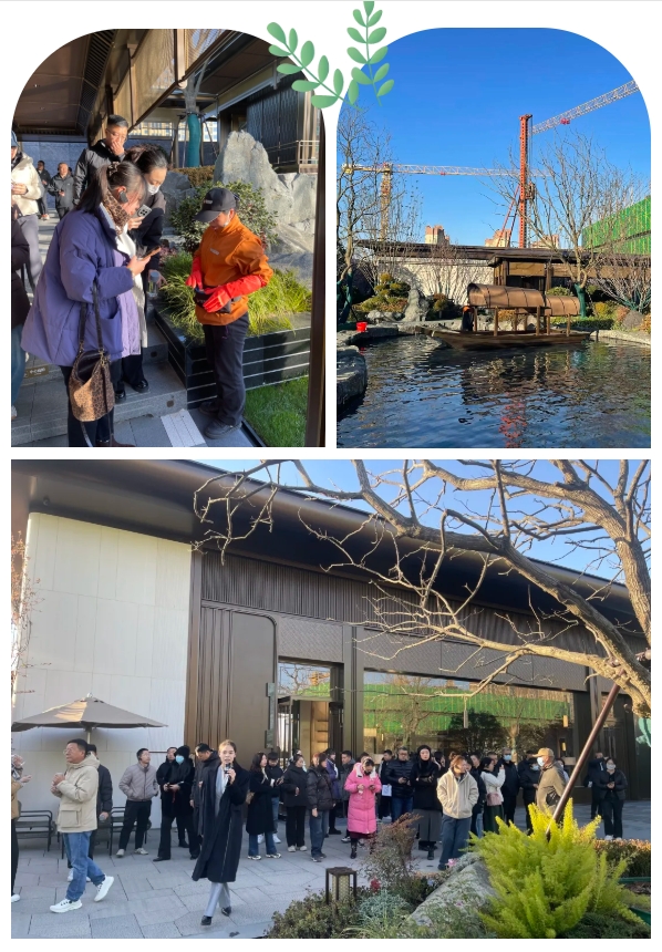 代表团首站抵达璞悦东方,项目示范区以东方美学为基底,将景观与建筑自然融合,营造出雅致舒适的参观氛围。在案场接待区,工作人员专业规范的服务流程、细致入微的讲解服务,让会员代表们直观感受到“以客户为中心”的服务理念。