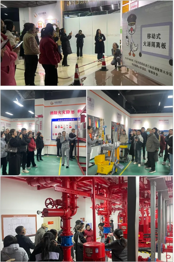 第二站来到海铂云庭,项目的实训基地、统一标识展示墙及消防设备间成为观摩焦点。在实训基地,完善的设施配置、系统化的培训课程体系令人印象深刻,负责人介绍,基地定期开展服务礼仪、应急处置、设备操作等专项培训,助力服务团队专业能力持续提升。统一标识展示墙则以清晰直观的形式,呈现了项目服务理念、管理规范及工作流程,让标准化服务有据可依、有迹可循。走进消防设备间,各类设施摆放整齐、标识清晰,完整的维护记录和规范的管理流程,彰显了项目对安全管理的极致重视,为会员单位在消防安全管理方面提供了宝贵参考。