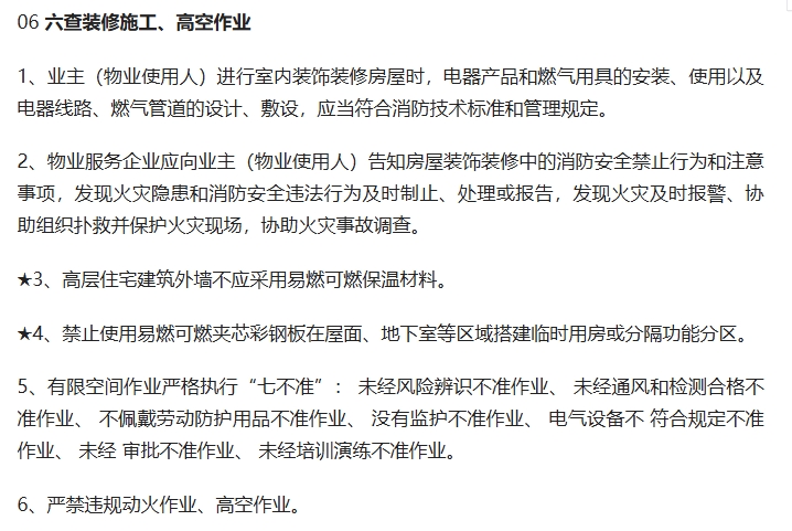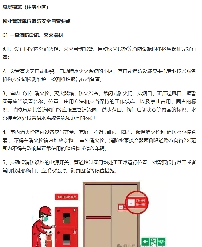 高层建筑(住宅小区)物业管理单位消防安全自查要点