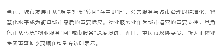 重庆政协委员李茂顺:“质价相符”是物业行业健康发展的基石